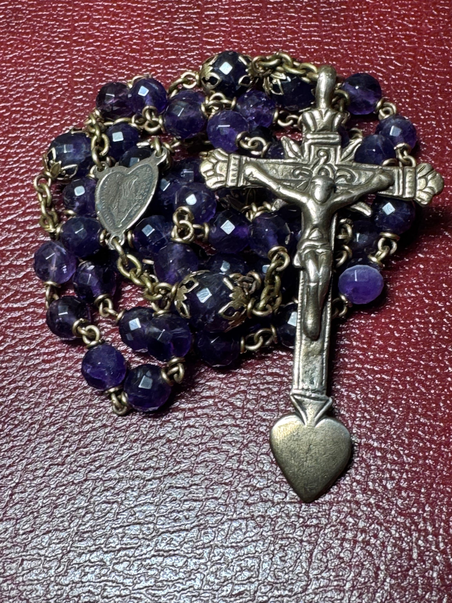 2 3/4 inch Red Bronze Latin. America 1800s New Old Stock, Heart Crucifix